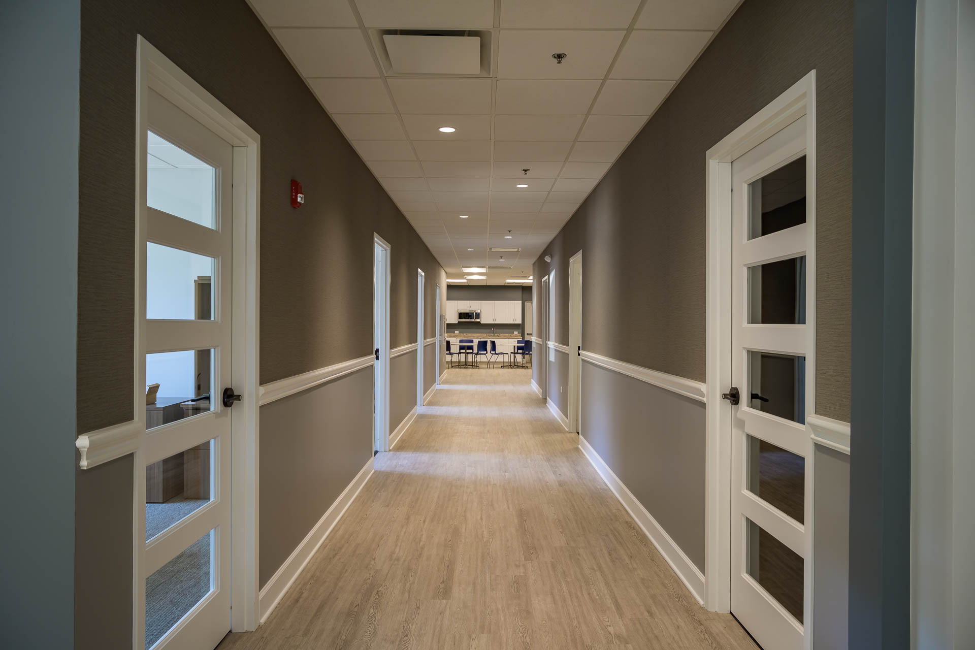 The 9,000 SF renovated office space includes a reception area, customer lobby, conference room, private offices, breakroom, ADA compliant bathrooms, server room and new finishes, millwork, countertops and flooring.