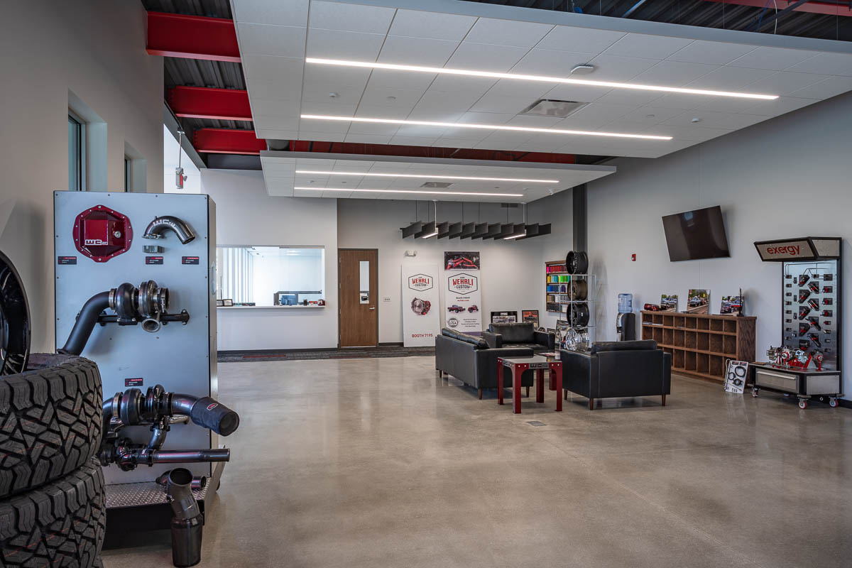 The new precast facility is built on an 11-acre site, a size that provides the potential for further future expansion by Wehrli, which specializes in high-performance diesel upgrades, powder coating and custom metal fabrication. The building features a two-story 12,000-SF office area, with elevator-accessible space on the second floor for future expansion. The manufacturing area, which totals approximately 100,000 SF includes space for their Performance Department, CNC Machining Operation, Mechanical Department, Powder Coating, Welding, Fabrication, and Laser Cutting, as well as a Research and Development area.