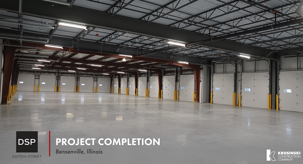 Krusinski Construction Company has completed another industrial redevelopment project for its repeat client, Dayton Street Partners at 700 Larsen Lane. The project included the major renovation of a (37) door, cross-dock truck terminal within a 3-acre light industrial park in Bensenville, Illinois.