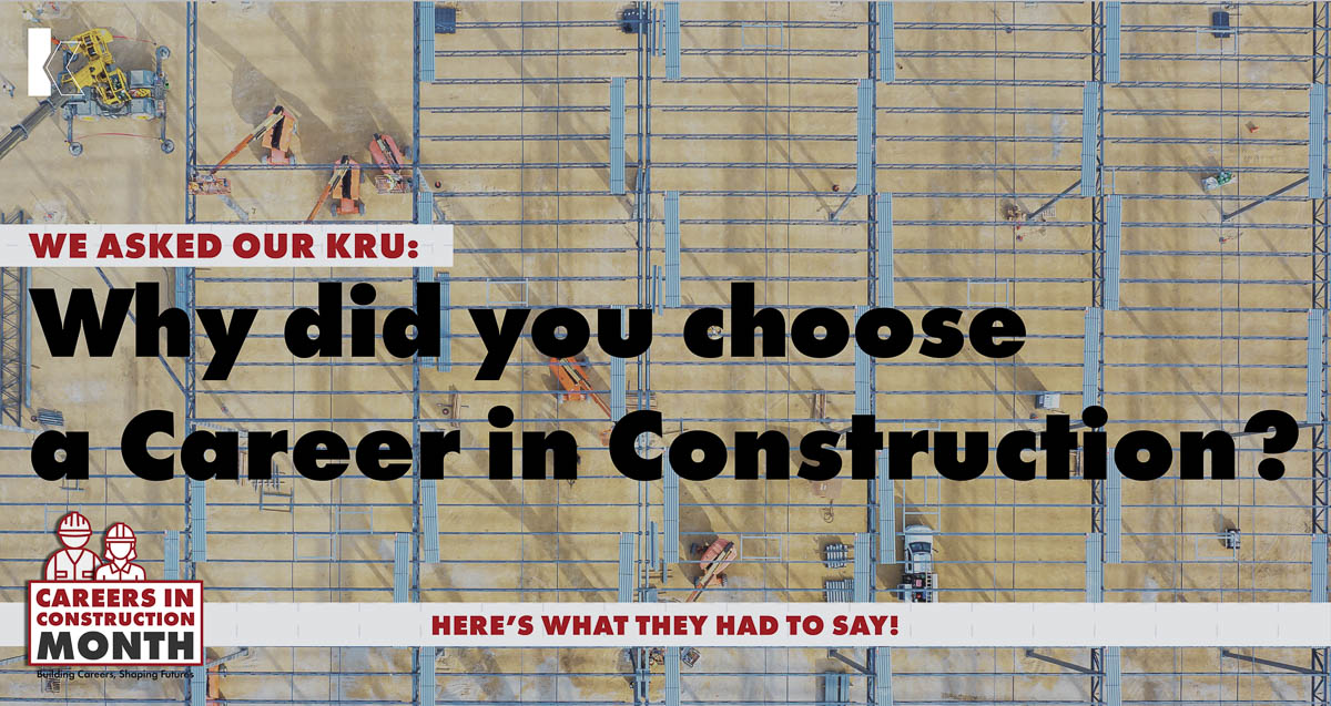 We asked our KRU, “Why did you choose a career in construction?” For some, construction runs in the family. For others, it’s the satisfaction of seeing their work come to life or the collaboration that drives every project forward. Each story is unique, but together they touch on what makes this industry and working with a passionate team so rewarding. Here’s what they had to say.